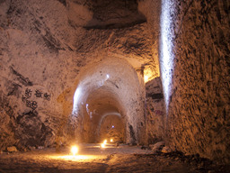 Mais revenons à cette carrière : passé le couloir de cavage, les galeries prennent rapidement de la hauteur, je n'ai jamais vu de couloirs aussi hauts, plus de 10m! Et il y a même un autre niveau par lequel on peut accéder par une descenderie et par une échelle gigantesque dans un métal bien épais. L'aventure!
