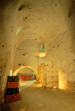de vin pour les amateurs fortunés de la région. 3km de galeries souterraines pour environ 10.000m2 et surtout une température constante, le petit parfum de calcaire en plus.