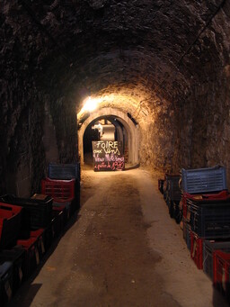 Je me rappelle encore les yeux que j'ai faits quand, allant simplement acheter une bouteille, je découvre que ces caves ont une magnifique descenderie et une carrière. Le site sert encore de stockage